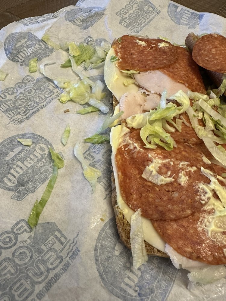 Peppered Pastrami, Turkey and Swiss Cheese.